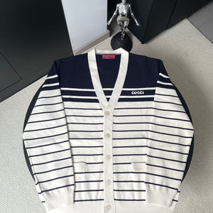 Gucci 25Fw Navy Blue Striped Contrast Knit Cardigan 109556