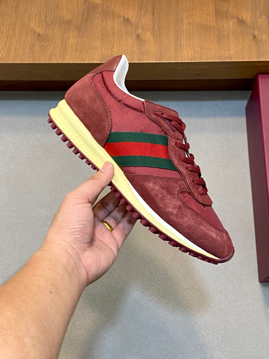 GG Men's Re-Motion Sneaker Red Suede Calfskin 719292