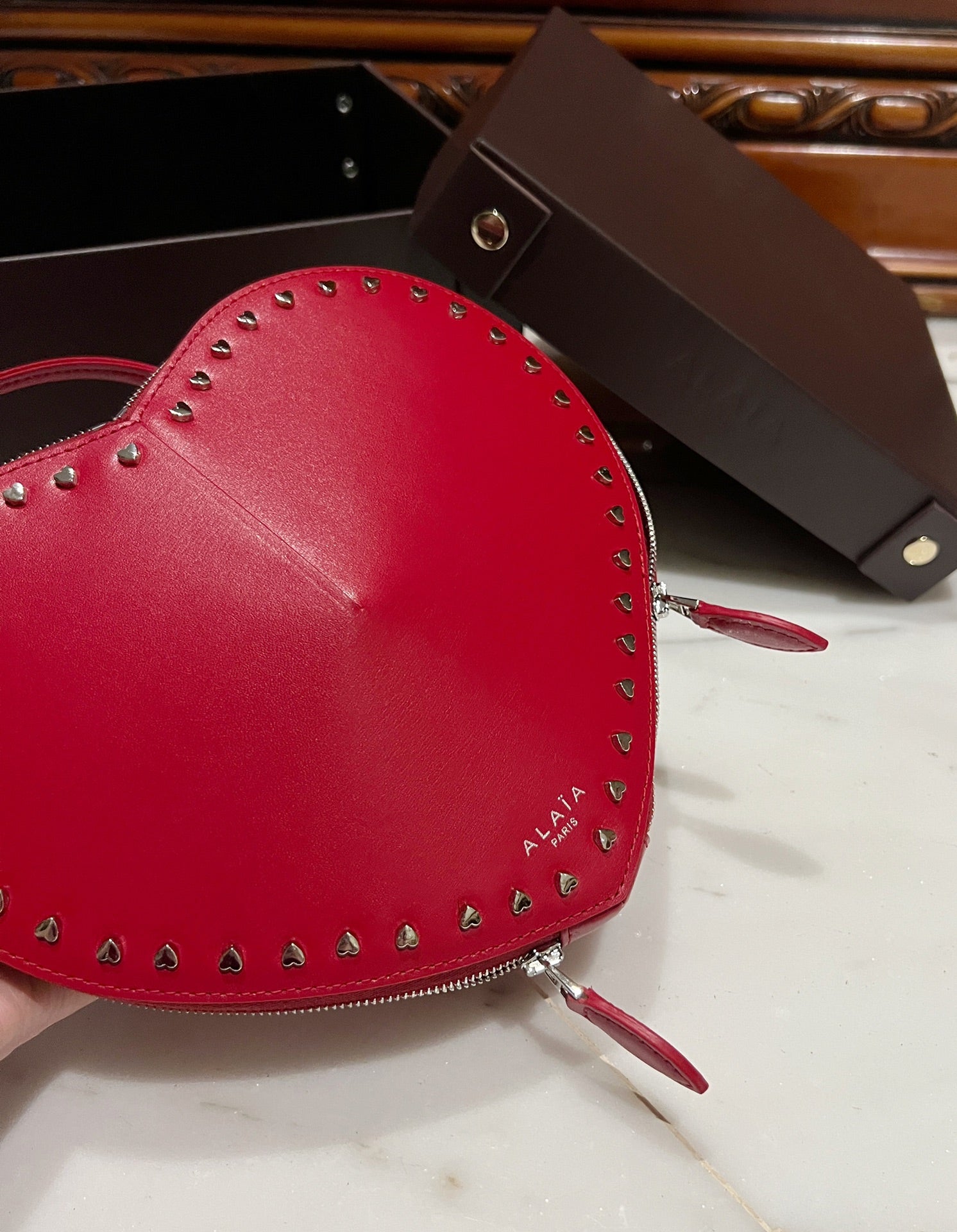 LE COEUR BAG 21 IN CLASSIC RED CALFSKIN WITH STUDDED HEART