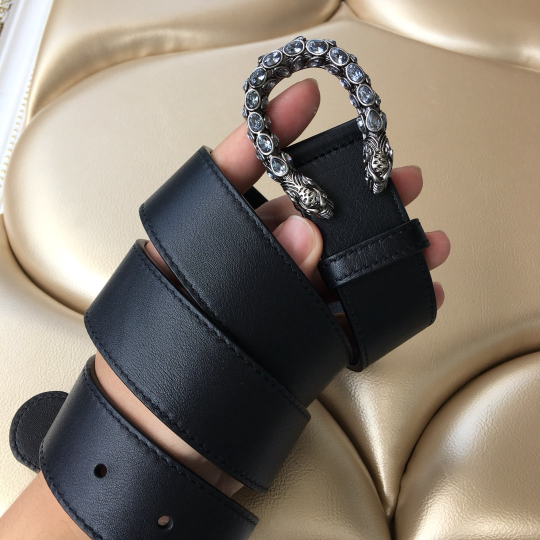 GC BELT 30MM DOUBLE BUCKLE BLACK SNAKE HEAD LEATHER