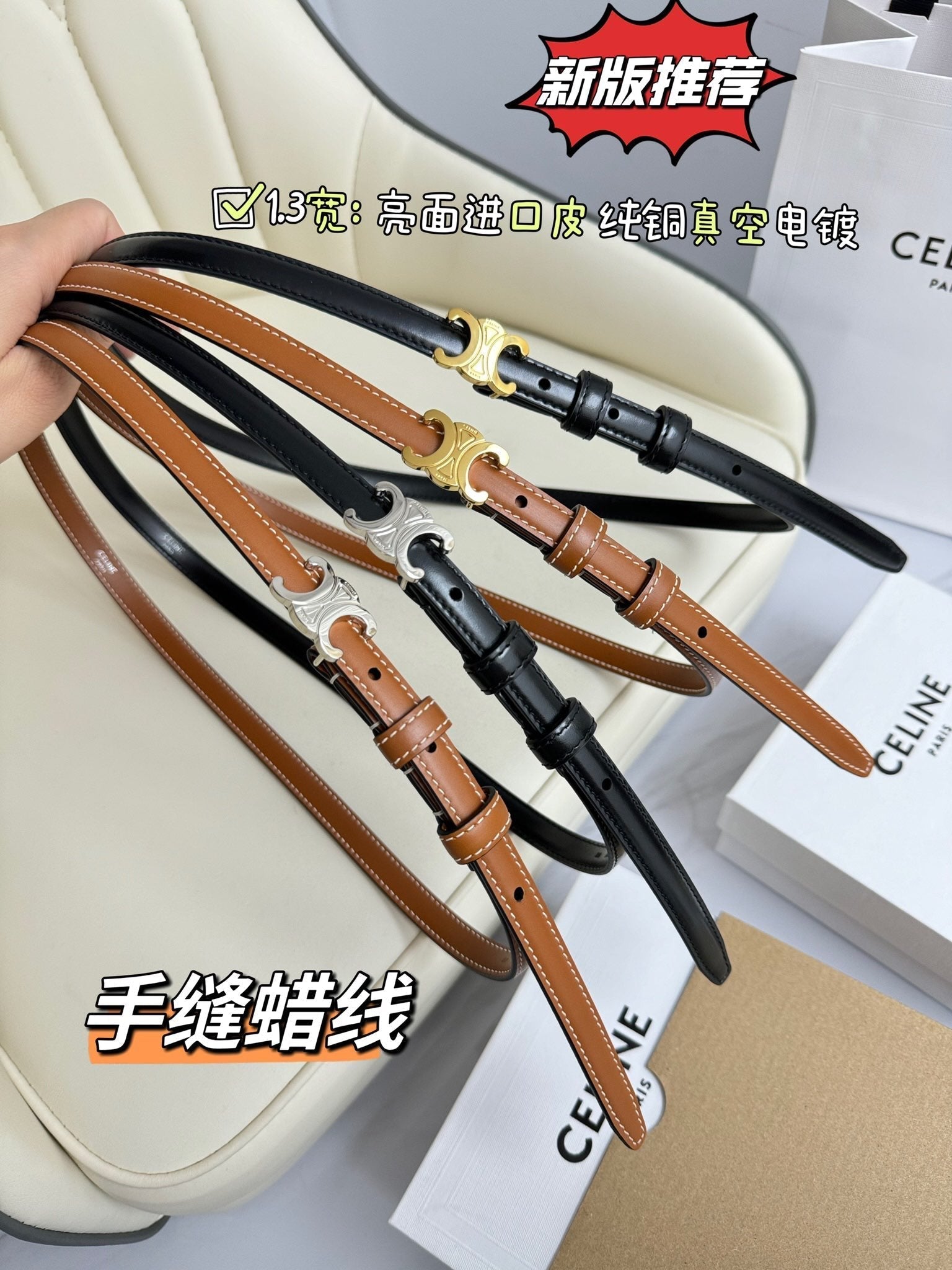 MINI TRIOMPHE BELT 13 MM BRONZE BROWN LEATHER SILVER HARDWARE