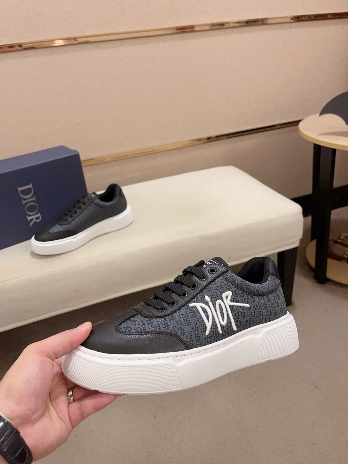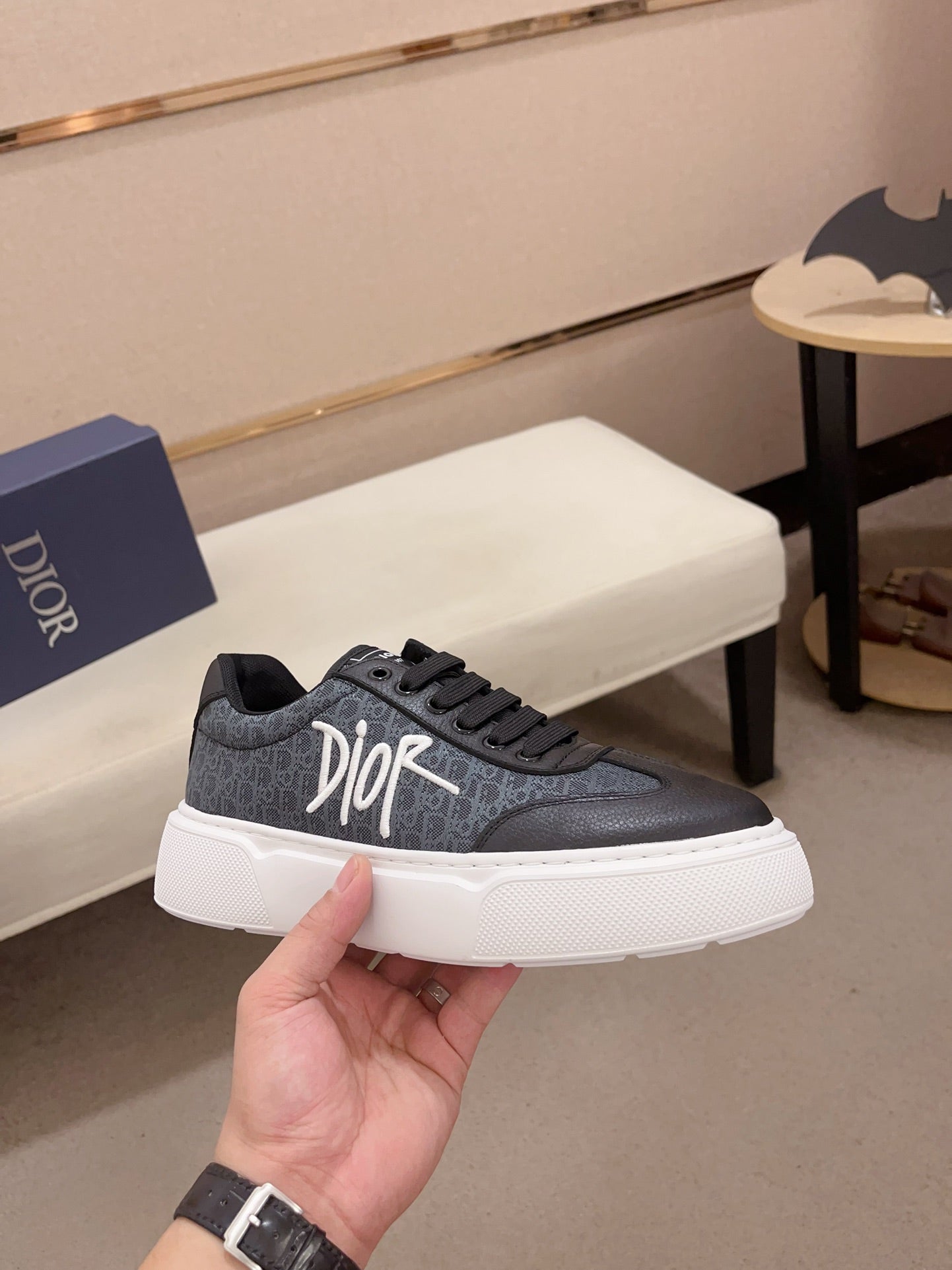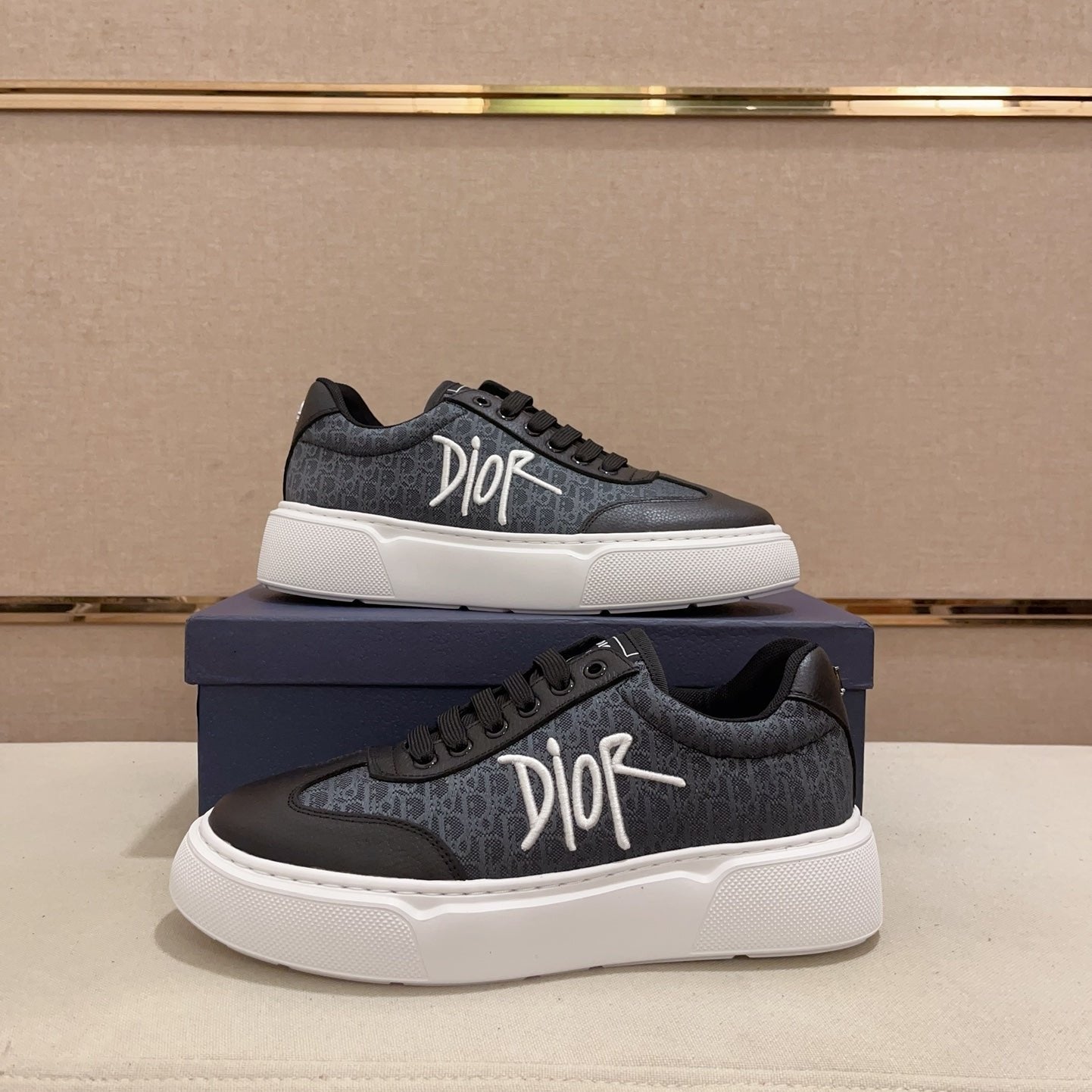 CD HOMME THICK-SOLE SNEAKERS BLACK CALFSKIN