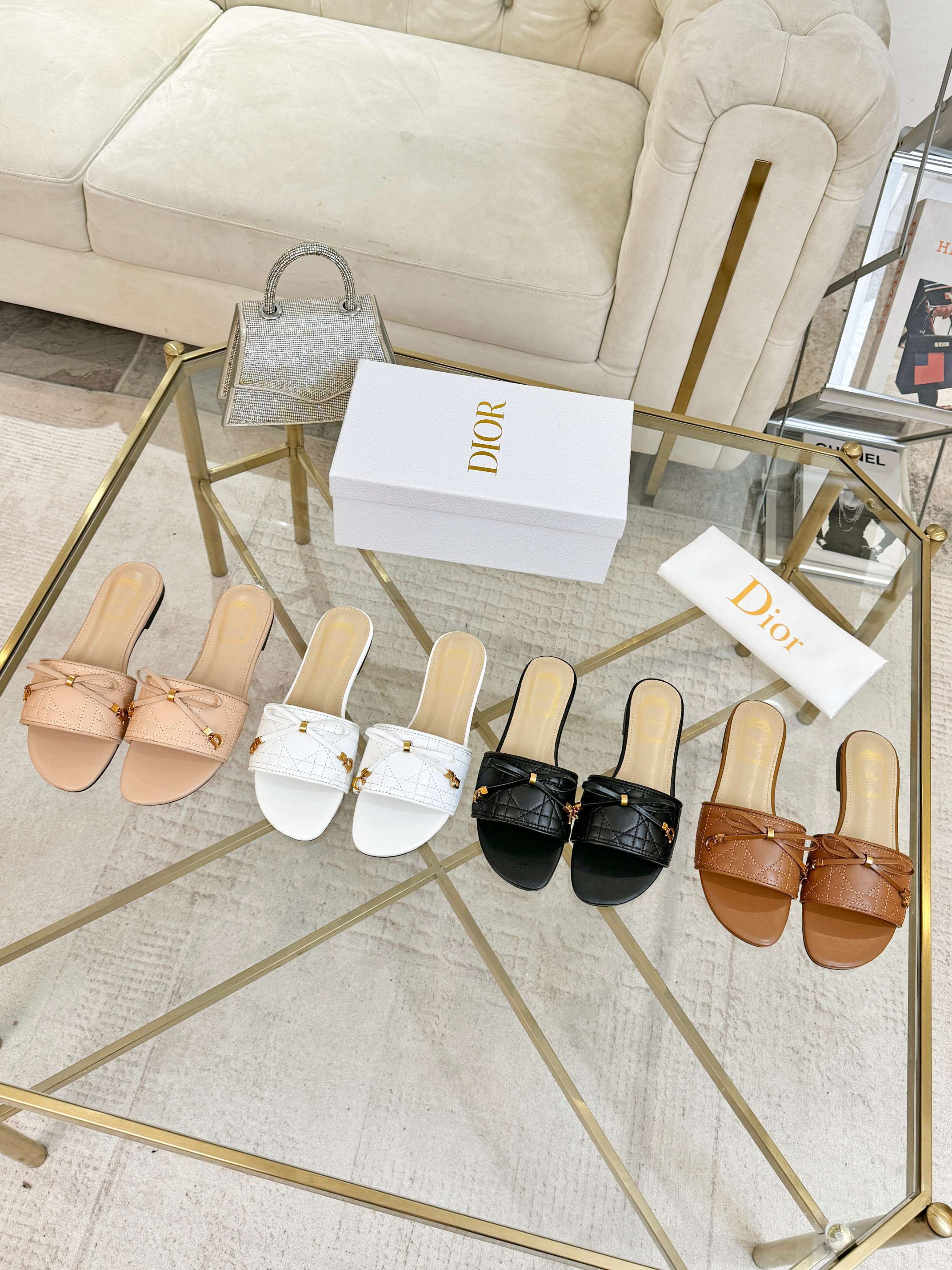 CD Cannage Slide Brown Quilted Lambskin 668034