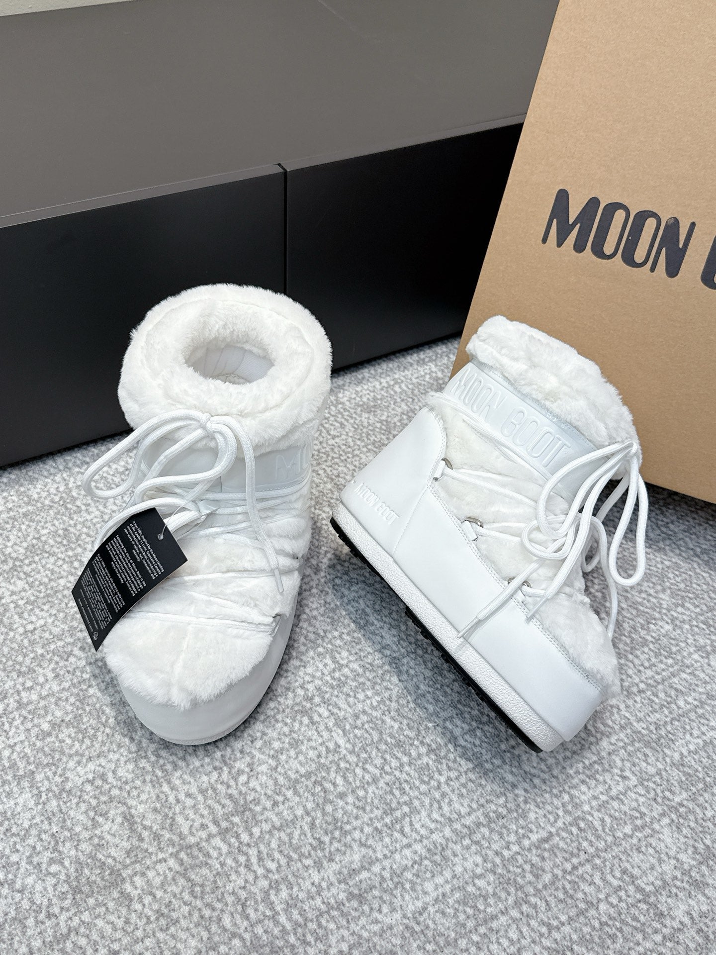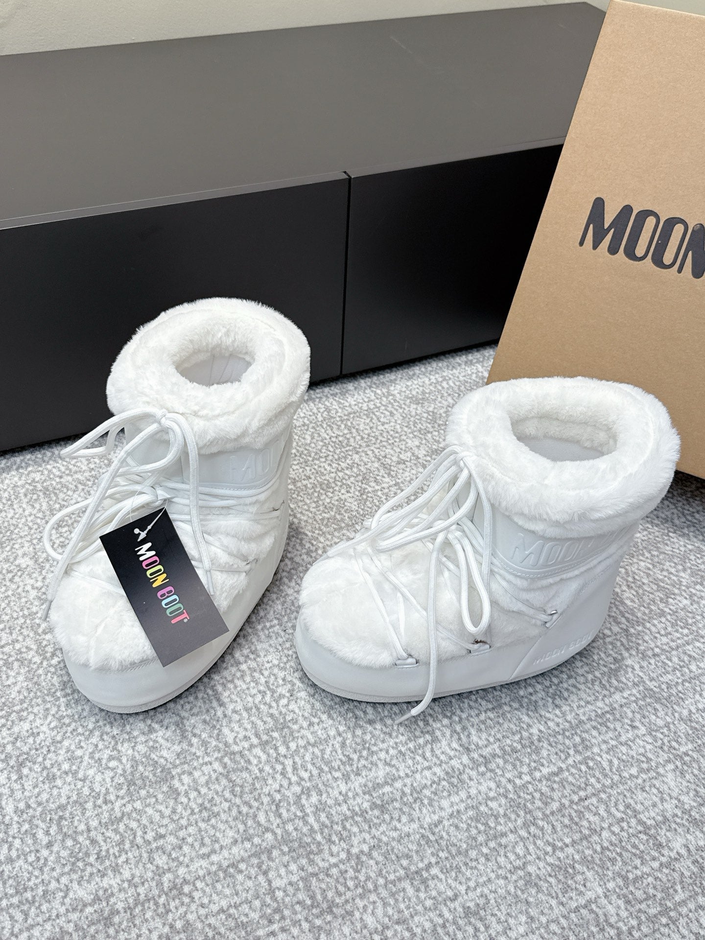 Moon Boot Icon Low Fur White Leather Faux Fur 515593