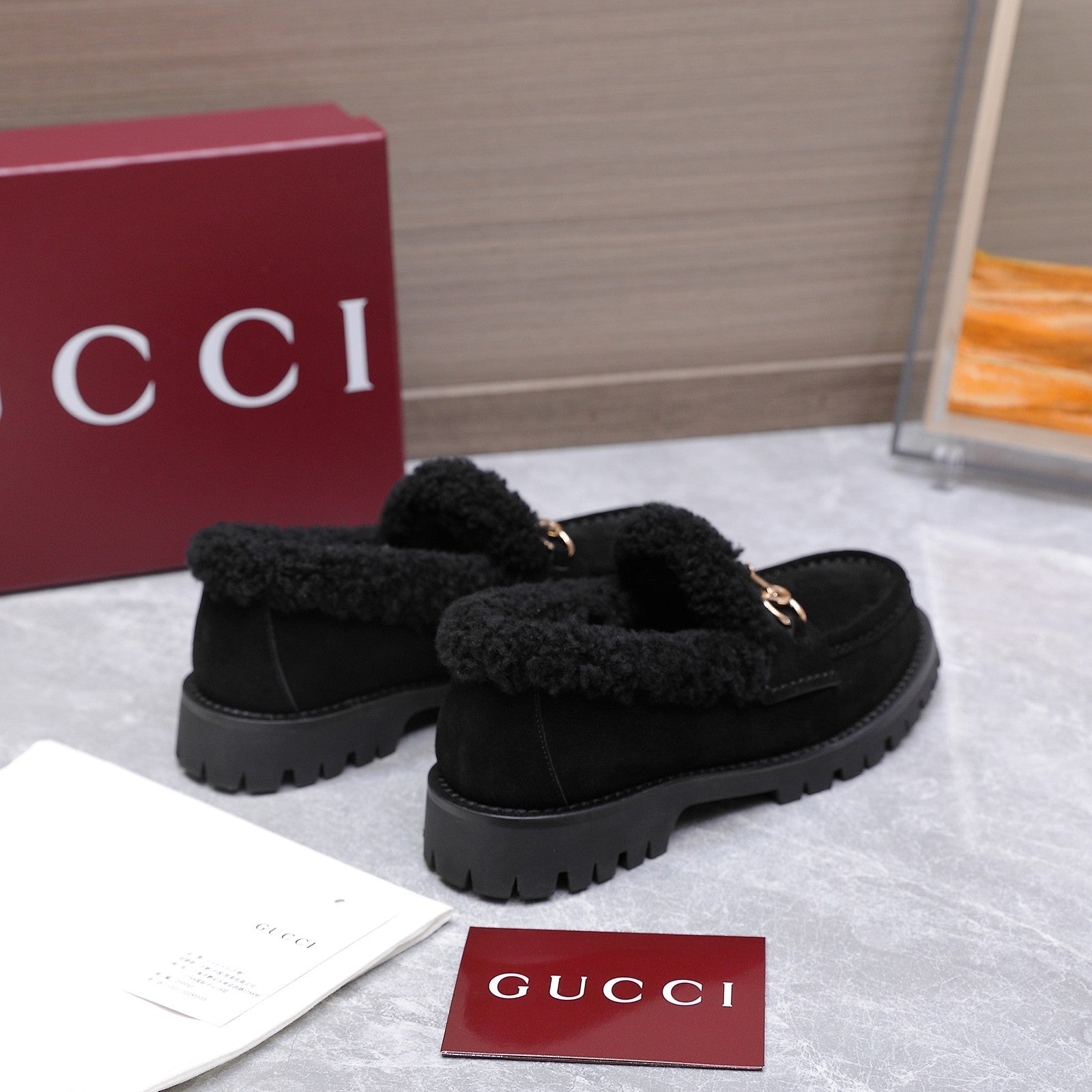 GG Women's Loafer Horsebit Black Suede Shearing 547326