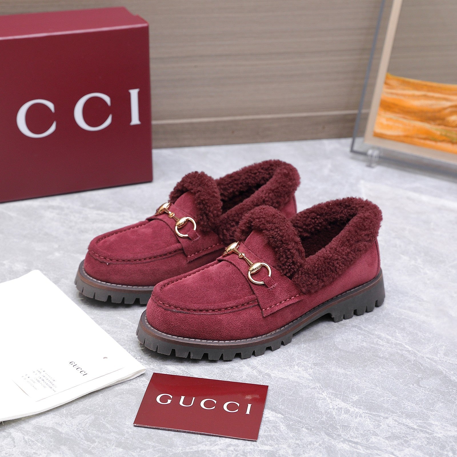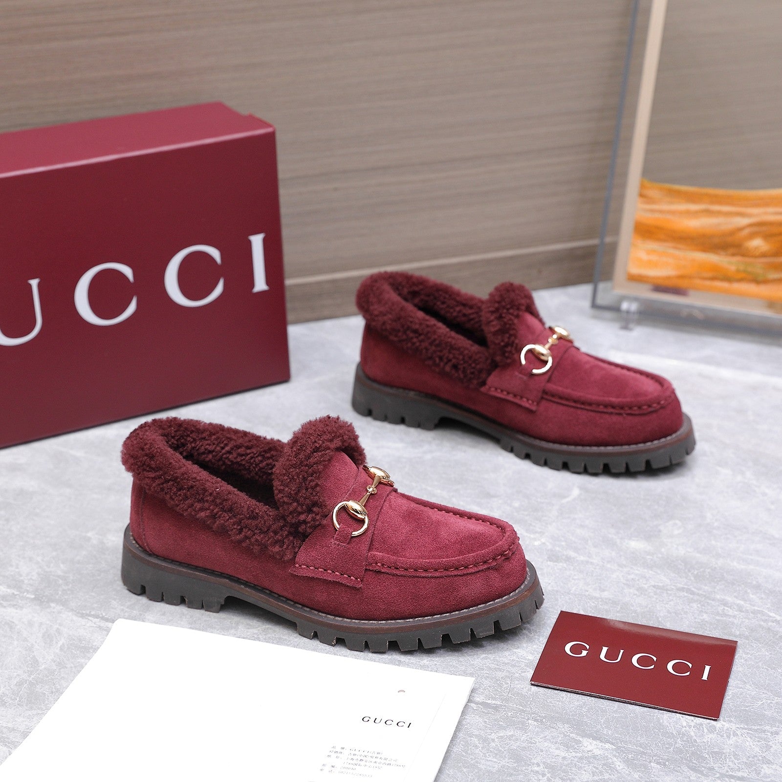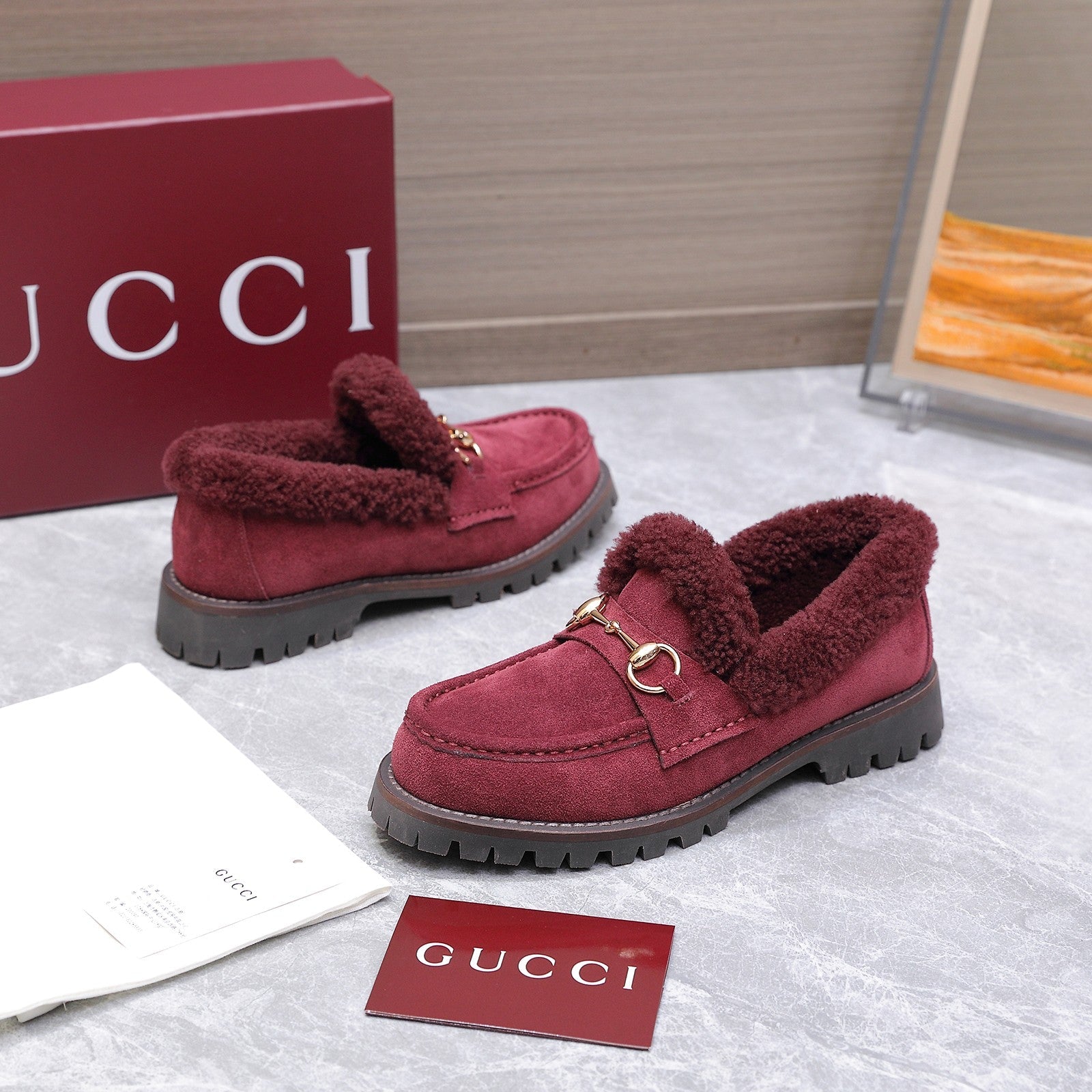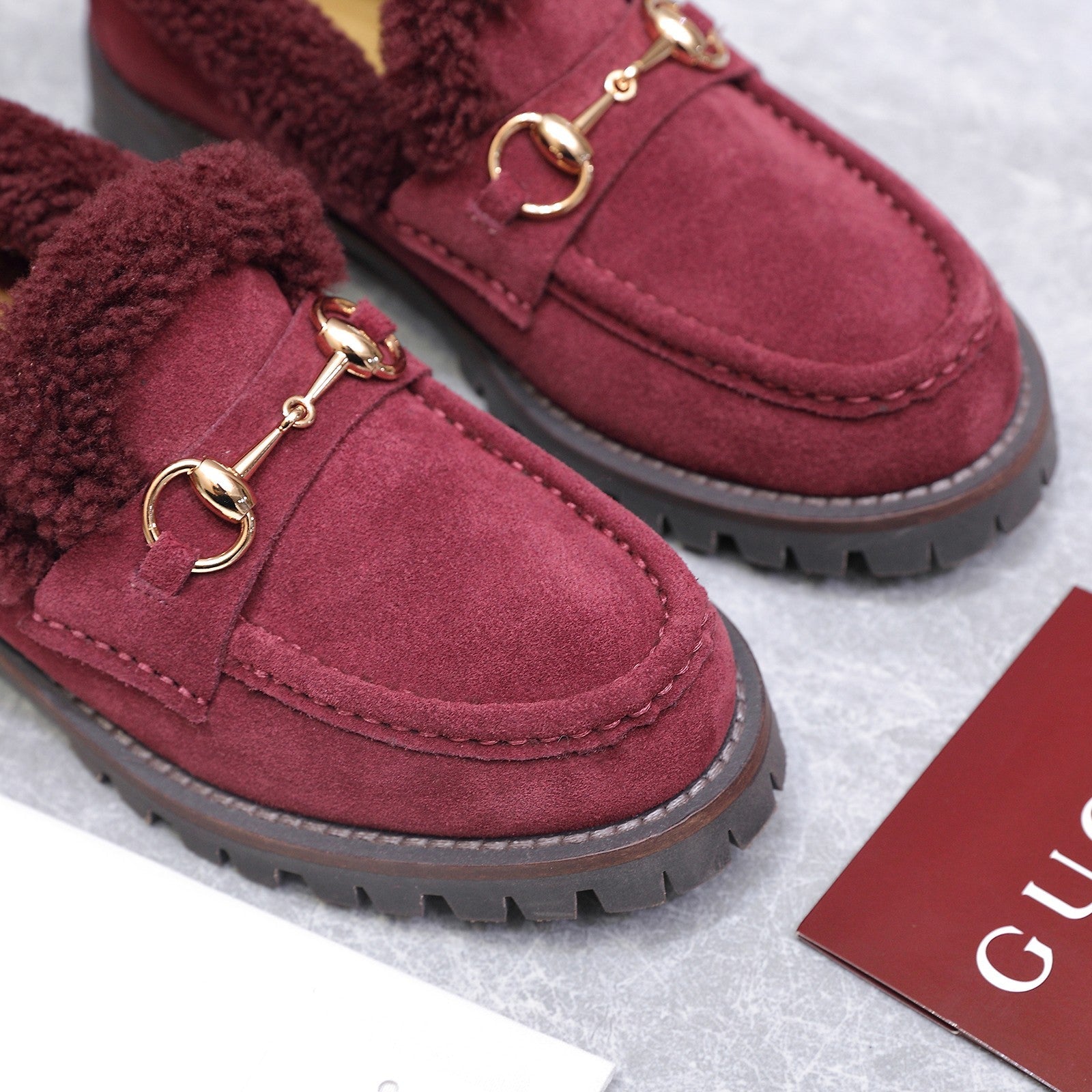 GG Women's Loafer Horsebit Red Suede Shearing 547324