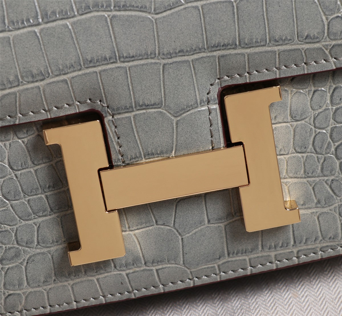 HM CONSTANCE 23 LIGHT GREY CROCODILE EMBOSSED CALFSKIN GOLD HARDWARE