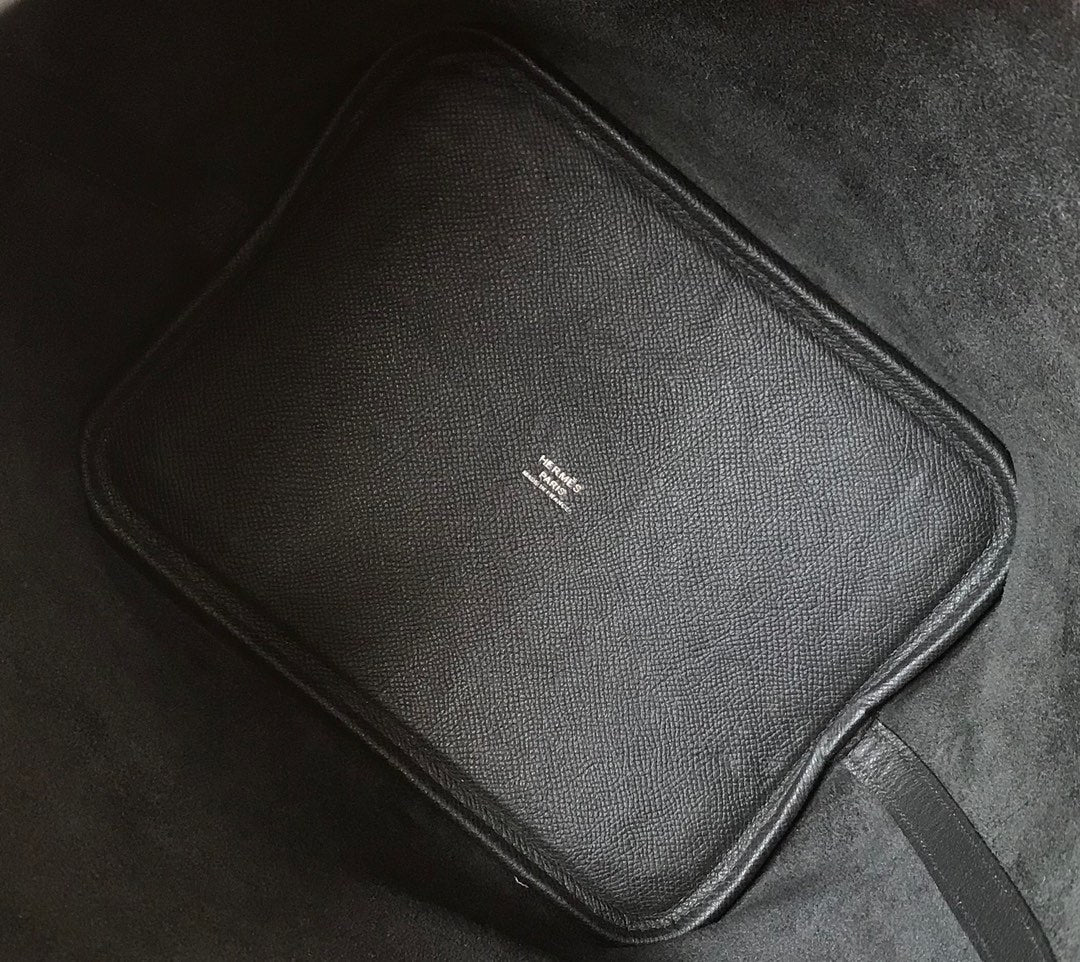 HM PICOTIN LOCK 22 BLACK EPSOM WITH BRAID STRAP