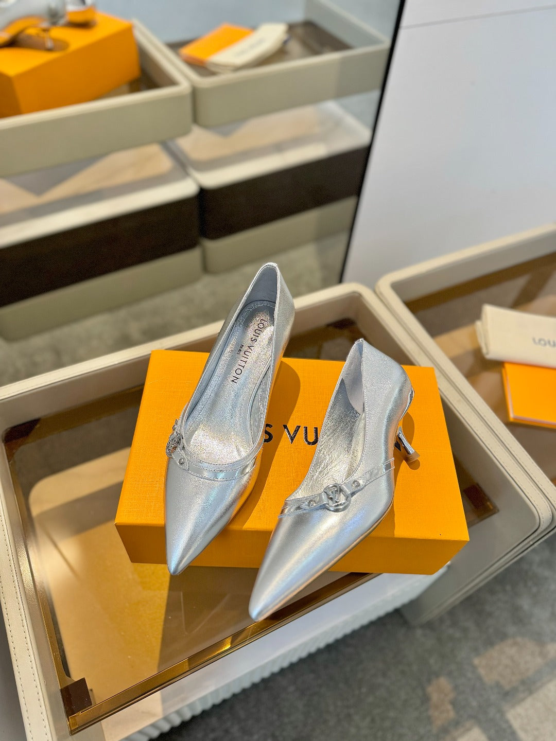 6AM 5.5cm Silver Metallic Leather Pumps 241209
