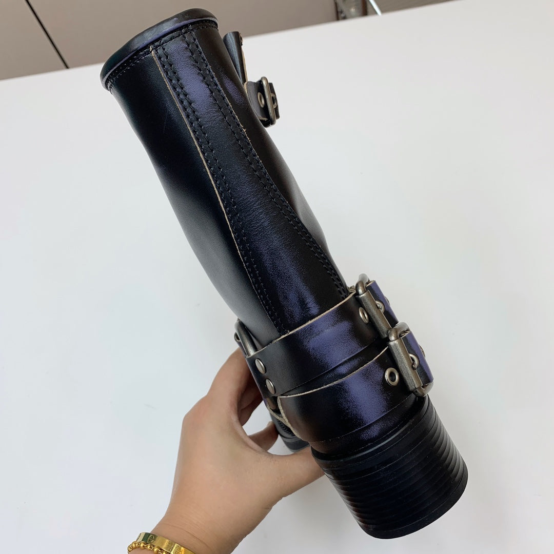 Miu Miu Biker Mid-Length Boots Black Leather 535199