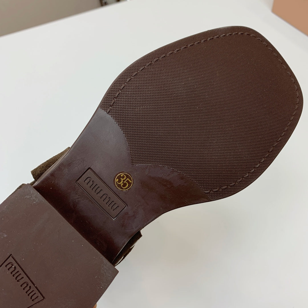 Miu Miu Biker Retro-Style Long Boots Brown Suede 535201