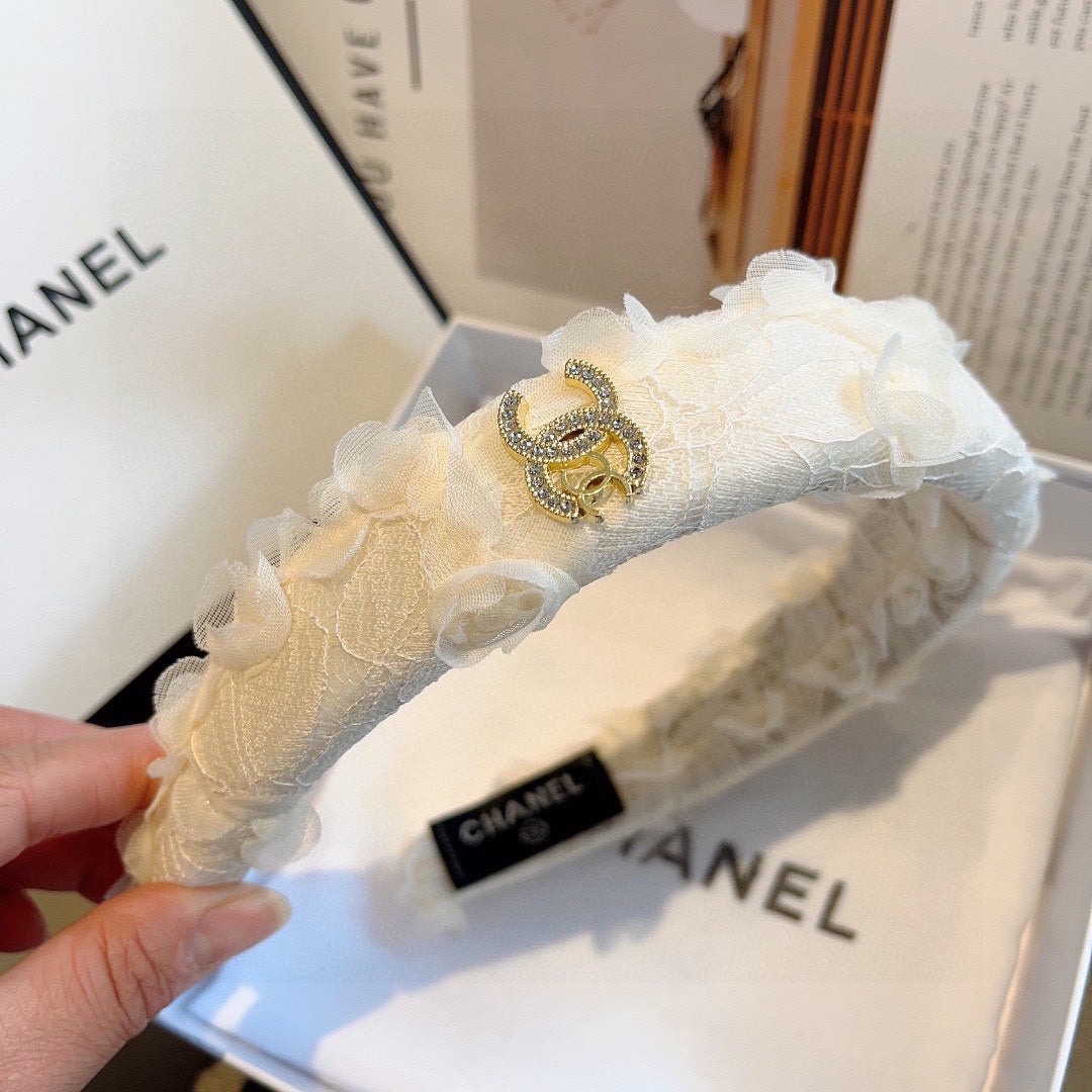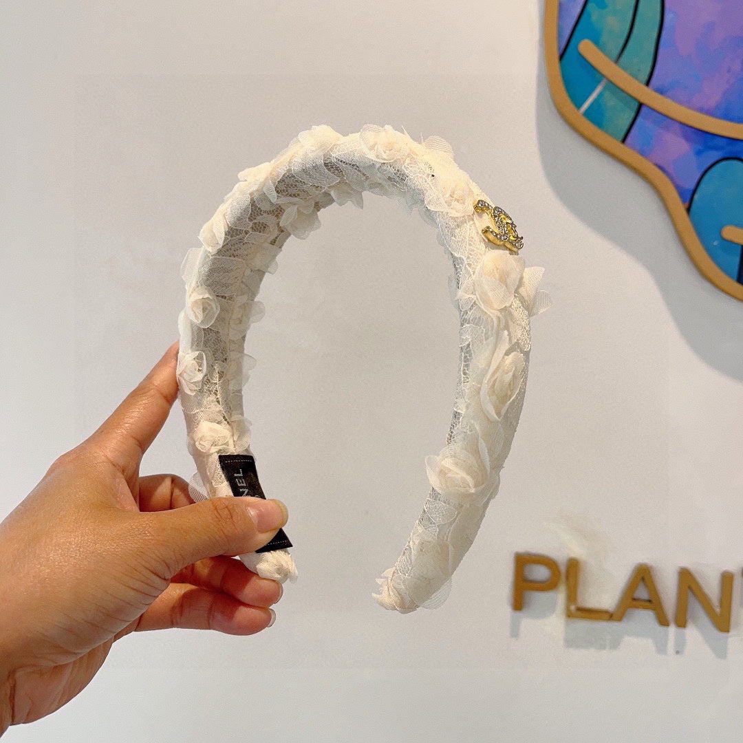 WHITE FABRIC WITH ROSE LACE TRIM HAIRBAND 414412