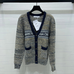Dior 2025 V-neck Cardigan Beige mix Navy Blue Wool 321292