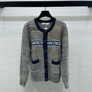 Dior 2025 Cardigan Beige mix Navy Blue Wool 321288