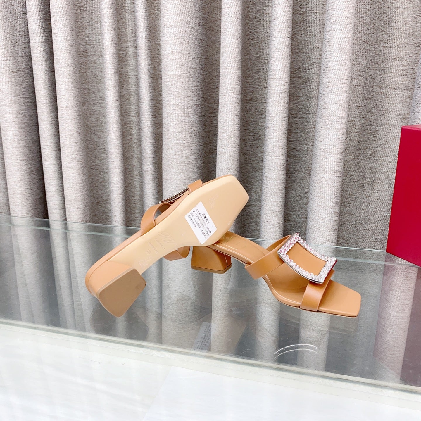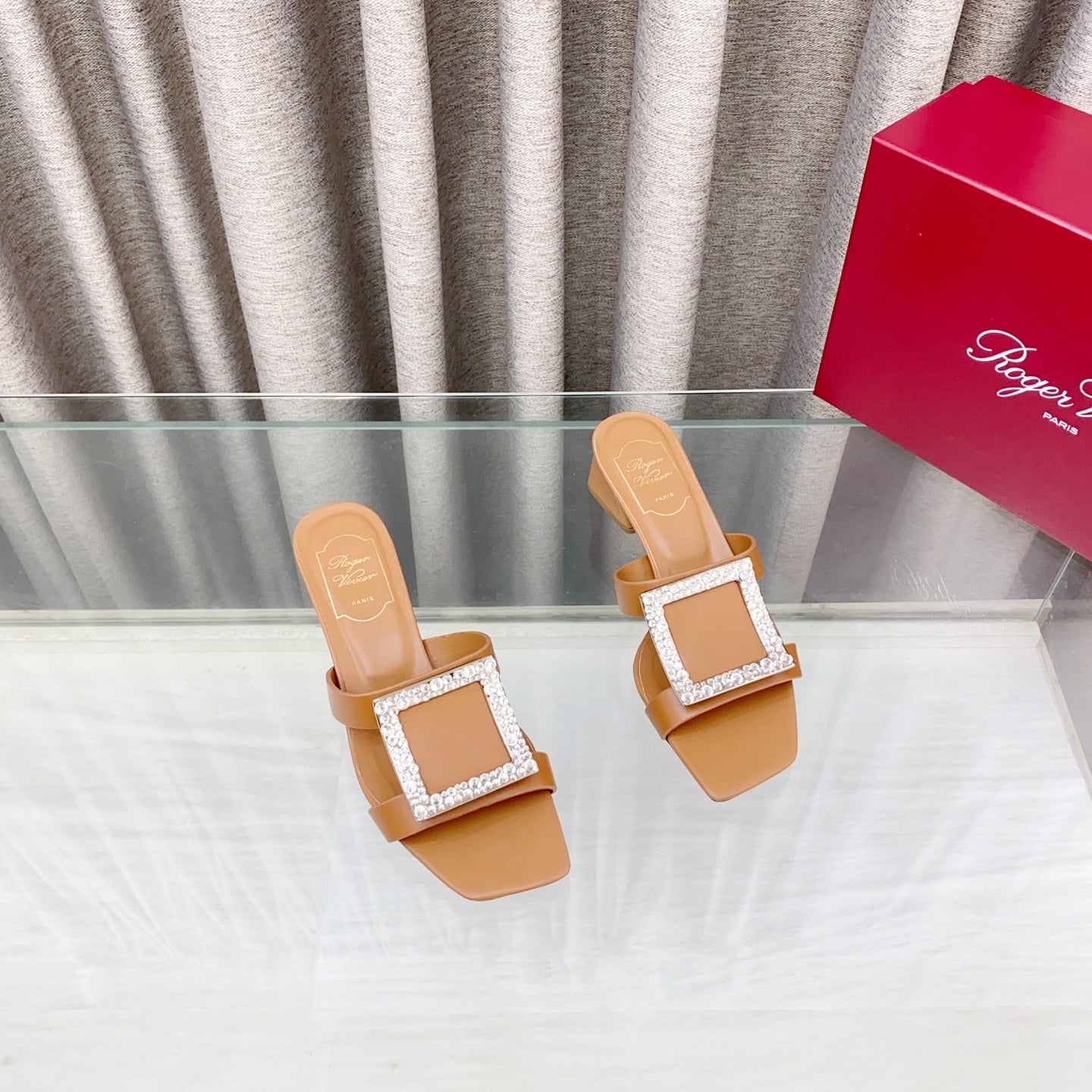 Viv 25 Diamond Mid Heel Slides Brown Cowhide 283039