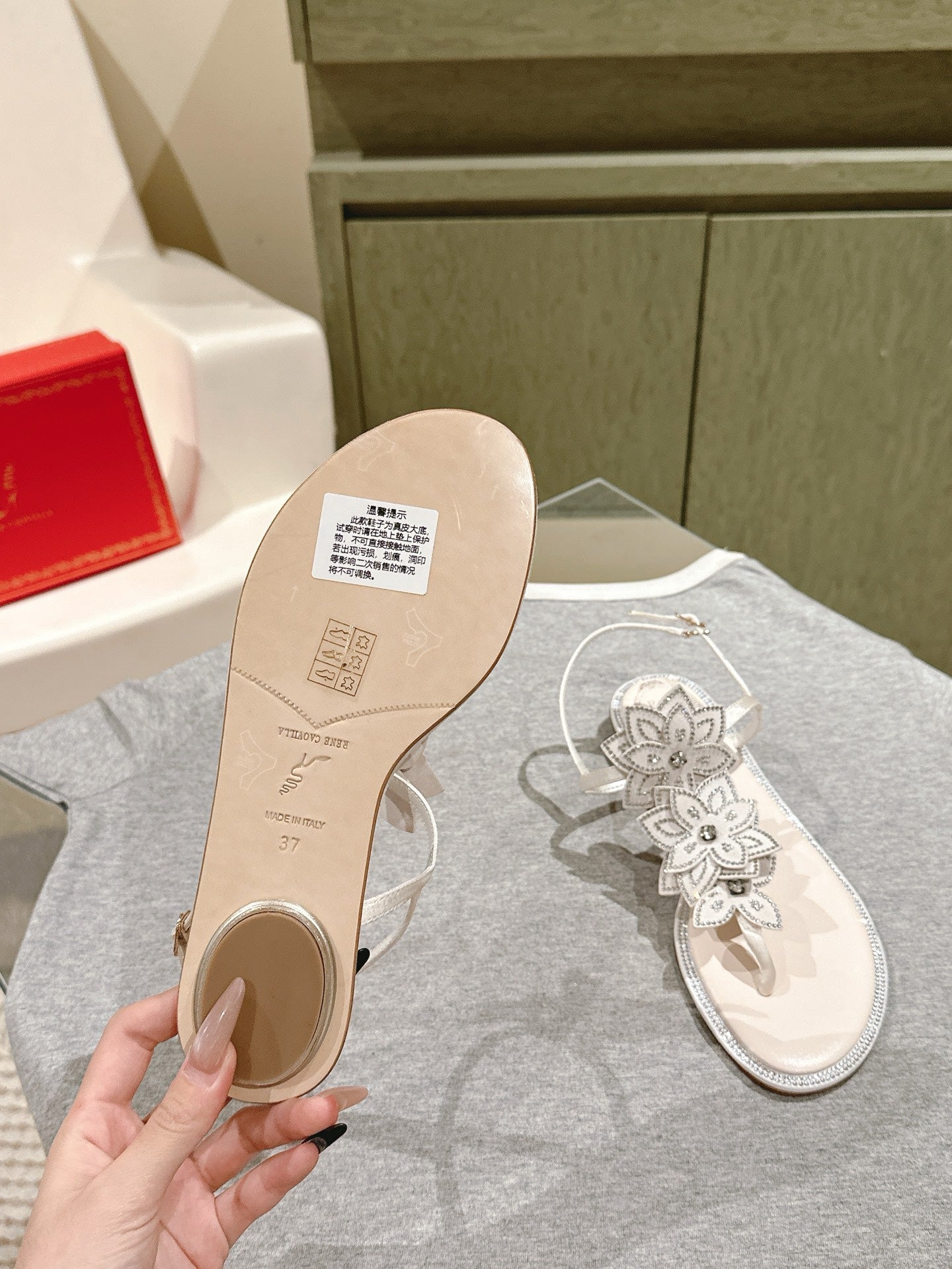RC 25 Flat Sole Flower Thong White Silk Rhinestones 268063