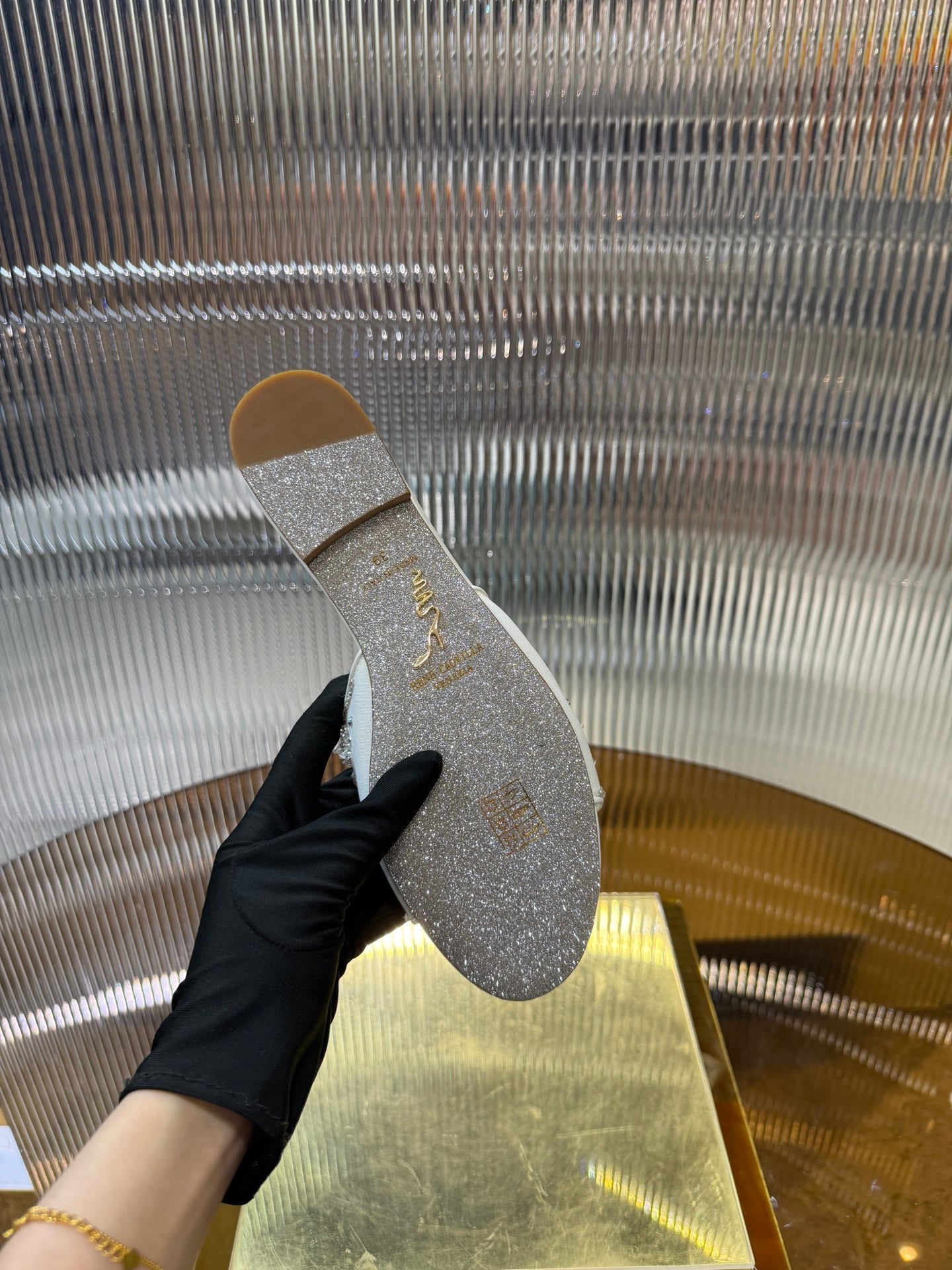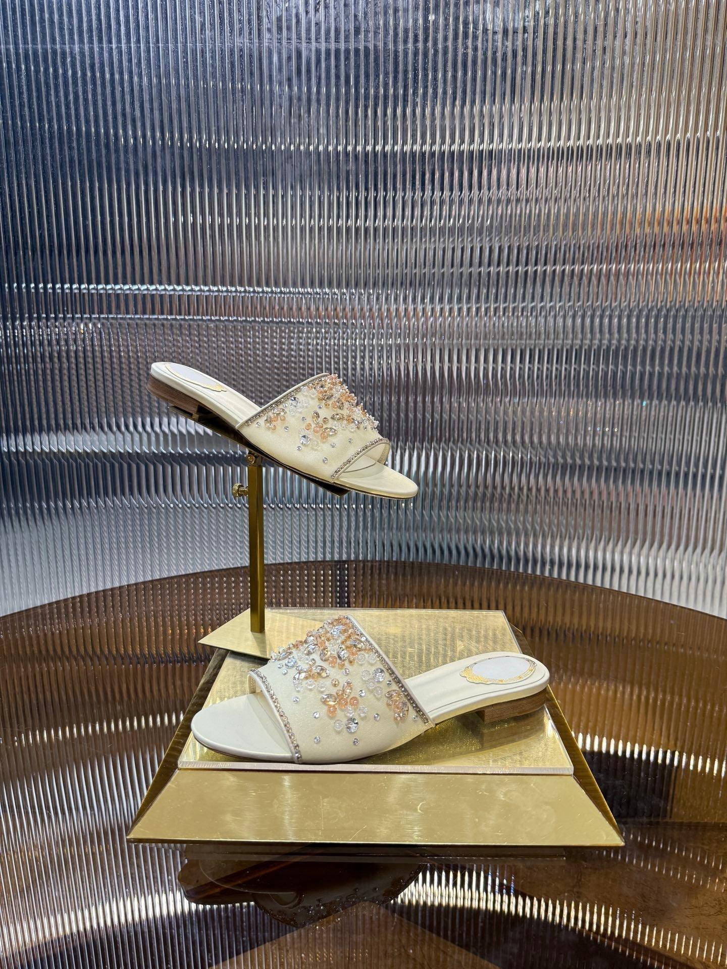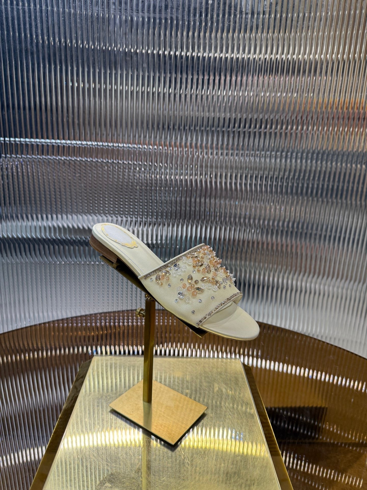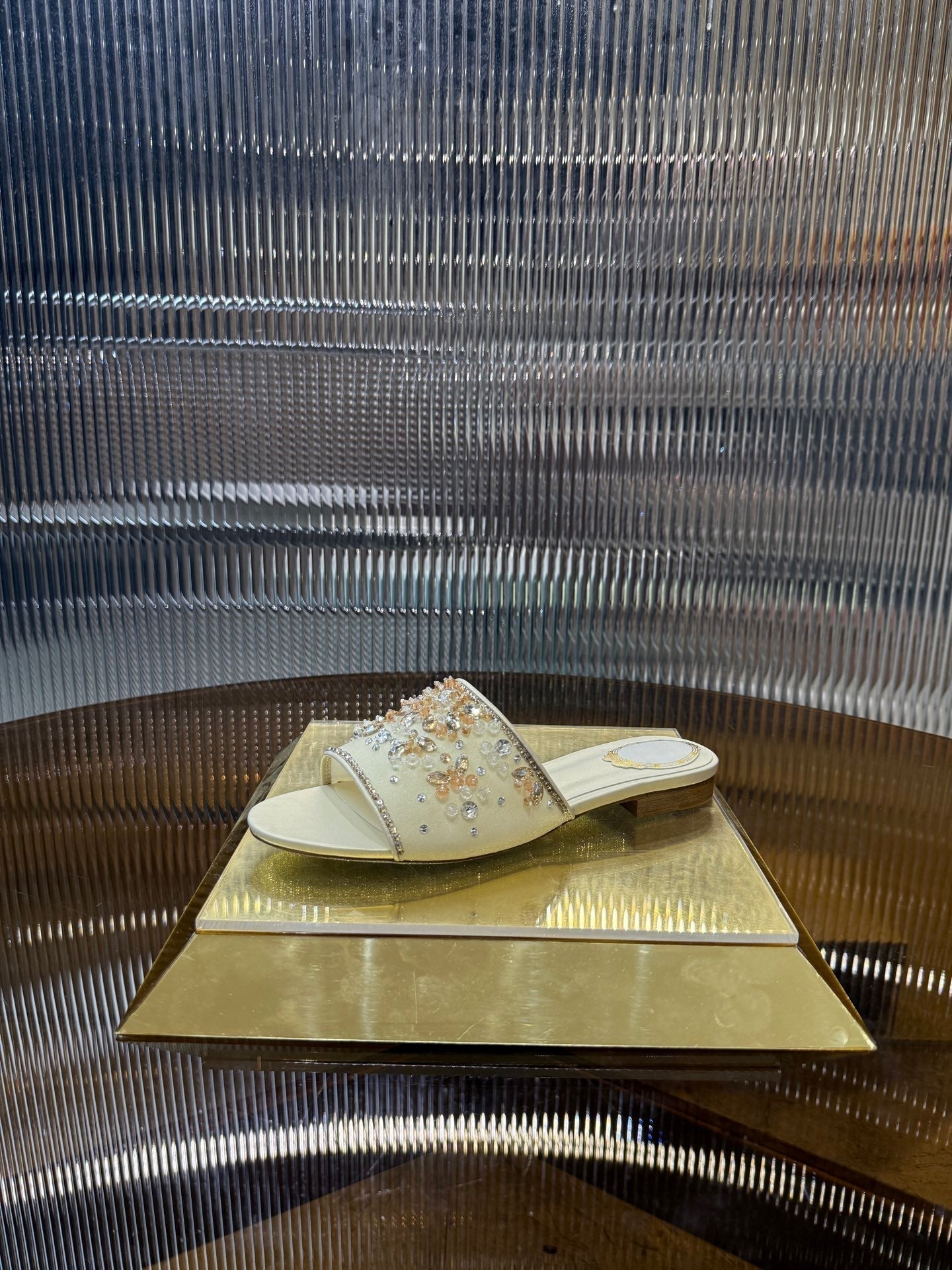 RC 25C Butterfly Flower Sandals Slippers Light Gold Sheepskin Rhinestone 275766