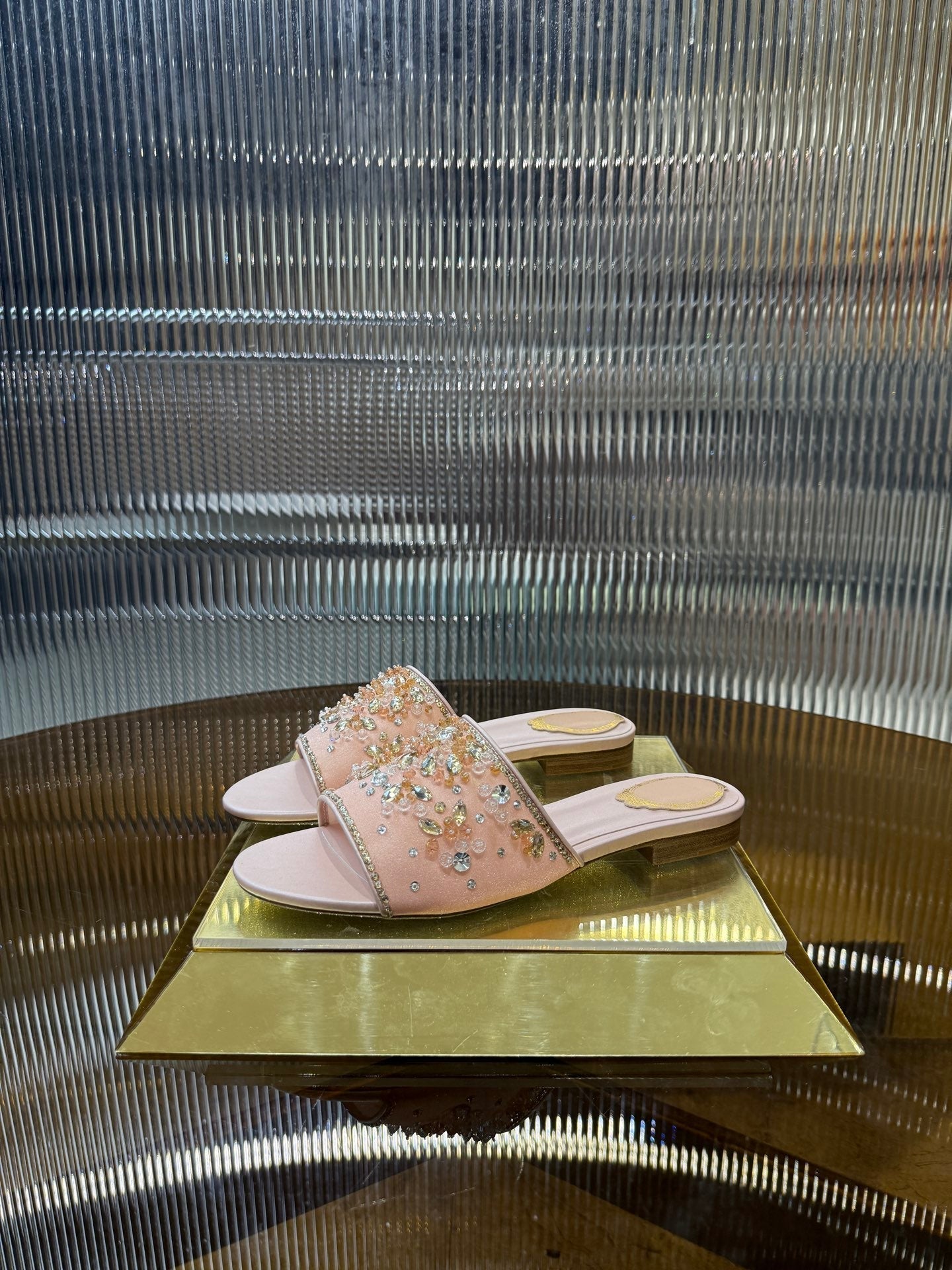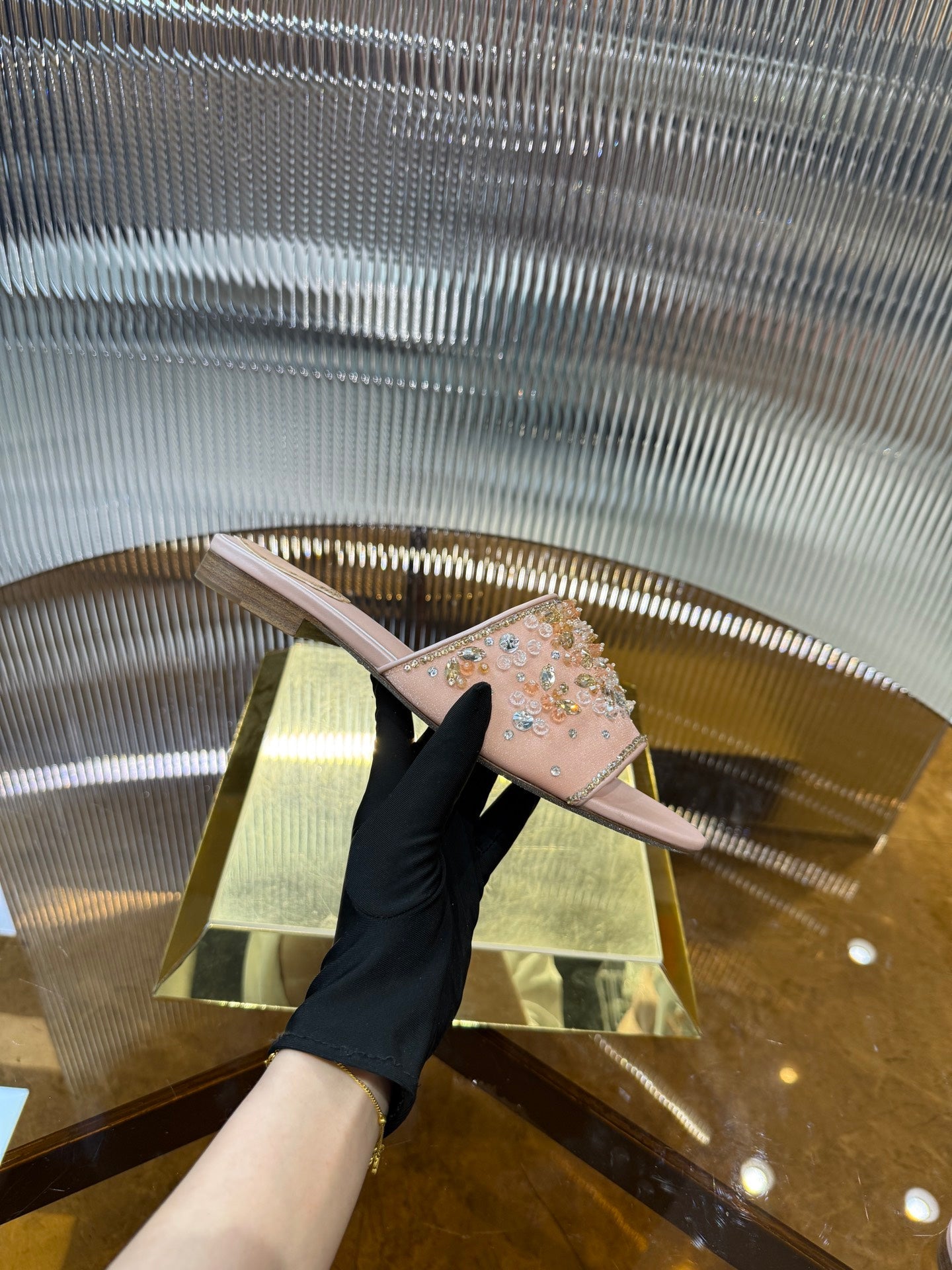 RC 25C Butterfly Flower Sandals Slippers Pink Sheepskin Rhinestone 275765